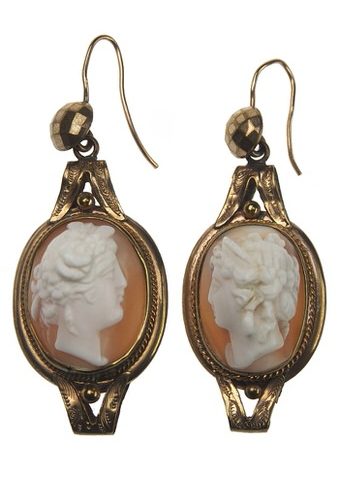 Ca. 1860 – Pinchbeck Earrings with Shell Cameos, English