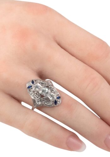 Ca. 1930 – Art déco ring with diamond and sapphires