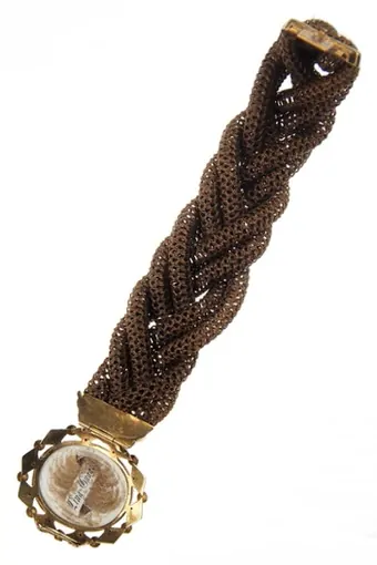 Ca. 1850 – 18 ct. Gold Bracelet with Miniature painting, Enamel & Hair Victorian Switzerland