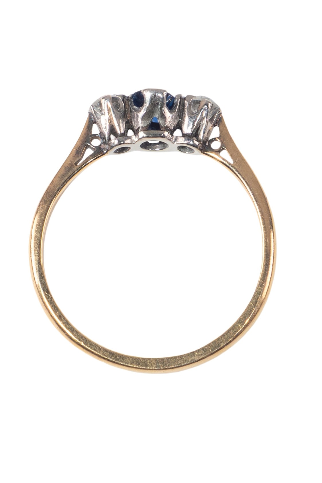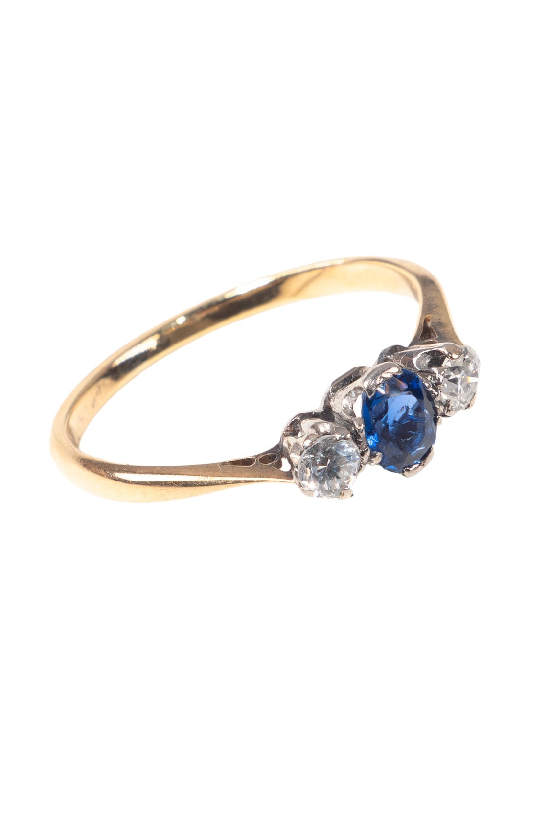 Ca. 1930 – Trilogy ring with sapphire and diamonds