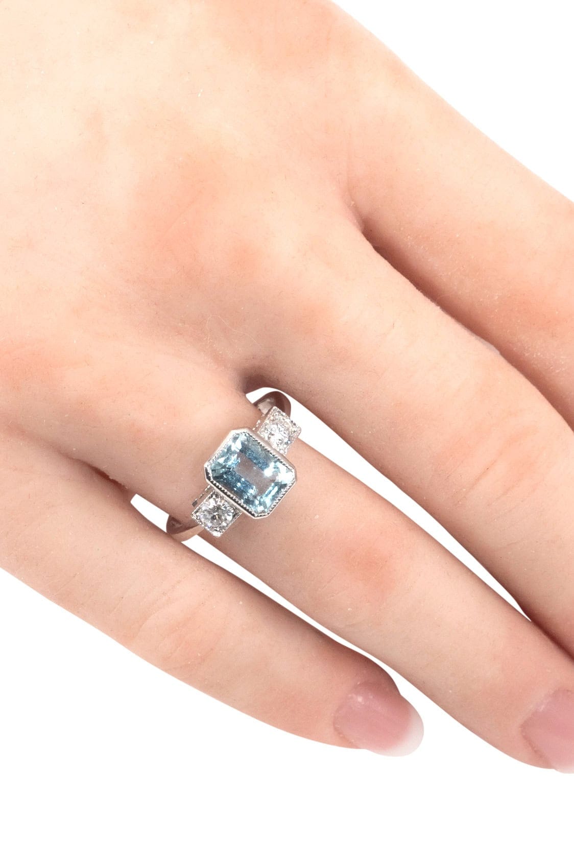 Ca. 1980 – Vintage ring with aquamarine and diamonds